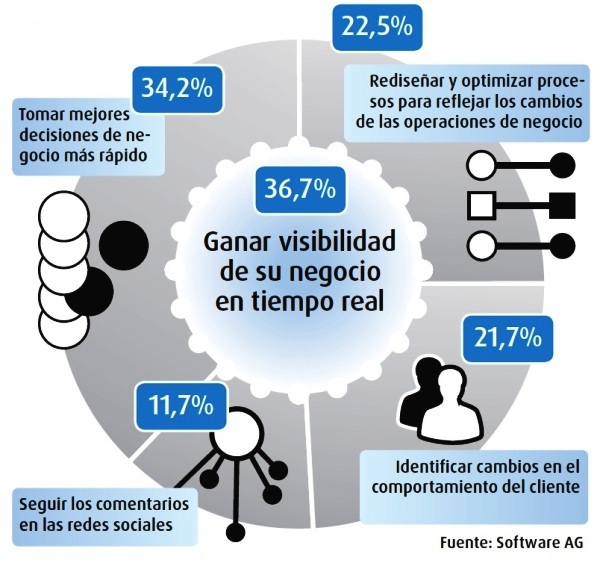 Los datos revelan que más de un 20% de los entrevistados cree que la gestión del Big Data y la colaboración son las tecnologías que permiten obtener más oportunidades de negocio. Por su parte, el cloud computing y las aplicaciones móviles fueron escogidas por más del 30%; y más del 40% señala al BPM (gestión de los procesos de negocio) como el principal motor de la empresa digital.