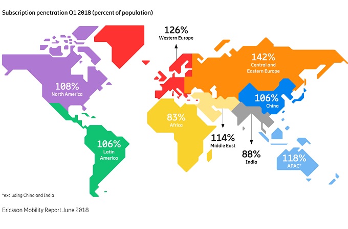 A escala global, se estima que los mayores despliegues de 5G se producirán a partir de 2020. Ericsson predice alrededor de 1.000 millones de suscripciones 5G de banda ancha móvil mejorada para finales de 2023, que representa alrededor del 12% de todos los abonados móviles.