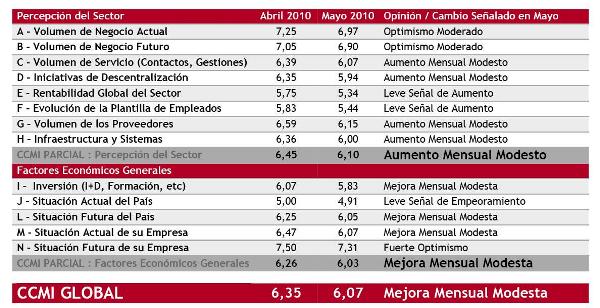Según el Customer Care Managers Index (CCMI) de mayo de 2010, los profesionales del contact center mantienen leves expectativas de aumento en la externalización y descentralización de servicios.
