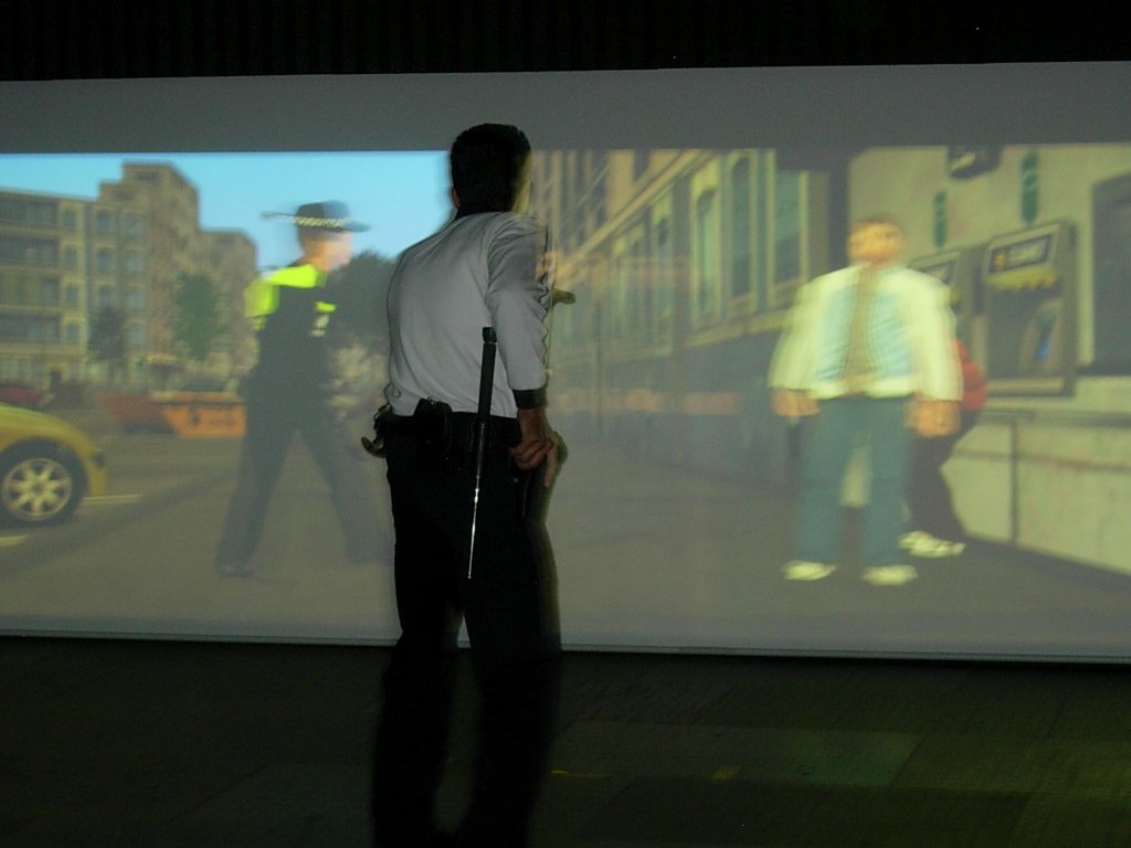 “Es posible además”, indica Dodero “modificar las circunstancias temporales –día o noche-, las condiciones climáticas lluvia, por ejemplo- y otros elementos contextuales al poder introducir eventos tanto sonoros como visuales”. De esta forma se consiguen unos niveles de realismo capaces de ‘trasladar’ a los agentes a situaciones de riesgo con totales garantías de seguridad. “La principal ventaja es que aquí está permitido el error y, de hecho, el error sirve para aprender con el objetivo de evitar que se cometa en la calle”, apunta el sargento de tiro, Diego Luengo, una de las 10 personas que forman el equipo de monitores de tiro de la PMM. “La clave”, según Dodero, “está en el nivel de implicación de los agentes”, y de hecho, “el realismo es tal que algún agente muy involucrado ha llegado a golpear la pantalla”, comenta.