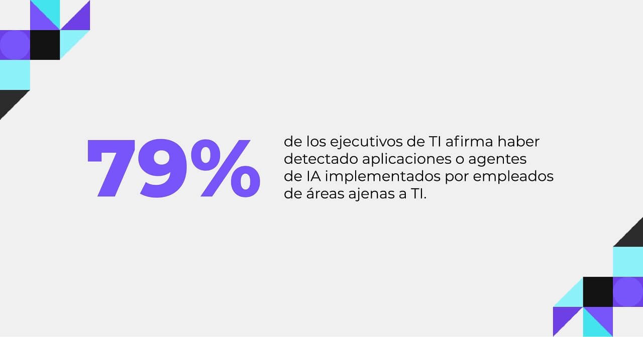 El ‘shadow IT’ o uso de hardware, software, aplicaciones o servicios sin la autorización, conocimiento o supervisión del departamento de tecnología ha acumulado más protagonismo con la irrupción de la IA. Así, el 79% de los encuestados afirma haber detectado aplicaciones o agentes de IA implementados por empleados de áreas ajenas a TI.