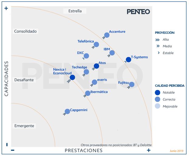 Techedge Group es una de las doce empresas que aparecen en el informe de Penteo donde se definen los principales integradores de Servicios Cloud de España. Techedge queda englobado en el grupo de proveedores consolidados y así es definido por Penteo: “Es un referente en el mercado y es capaz de dar un servicio completo end to end en la solución. Su propuesta de valor es sólida y aspira a convertirse en estrella”. En el informe no solo se destaca la capacidad de proporcionar infraestructura tecnológica, sino que también se valoran el compromiso y la flexibilidad, dos valores en los que destaca Techedge, según señalan las fuentes consultadas.