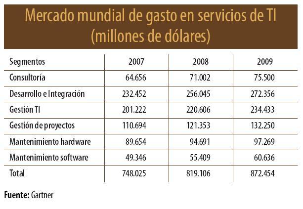 Los últimos datos facilitados por las consultoras son bastante halagüeños para este sector. Para Gartner, el mercado mundial durante este año se alcanzará los 872.454 millones de dólares, lo que representa un crecimiento del 6,5 por ciento con respecto a 2008 con un cifra de 819.106 millones de dólares. Por otra parte, los últimos datos facilitados por EITO (European Observatory Technology Observatory) auguran que el volumen de ventas del mercado de servicios en Europa Occidental se incrementará en un 2 por ciento.
