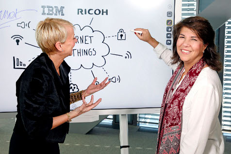 IBM y Ricoh han anunciado una gran revolución en las reuniones de trabajo corporativas con las nuevas pizarras interactivas cognitivas que utilizan la inteligencia de IBM Watson y tecnologías de voz para apoyar a las personas de forma activa en las reuniones mediante respuesta a comandos de voz, tomando notas, realizando acciones, e incluso traduciendo a otros idiomas.