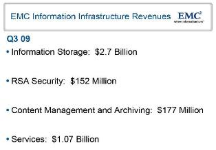 De cara al futuro, EMC espera que las inversiones destinadas a Tecnologías de la Información se vuelvan más estables en 2010 después de pasar un año de presupuestos recortados y proyectos de TI críticos más racionalizados. Por ello, ahora prevé ganar 87 centavos por acción y obtener unos resultados para el total del año de 13.900 millones de dólares cuando antes sus pronósticos eran de 82 centavos y 13.800 millones. La confianza de Joe Tucci, presidente y consejero delegado de EMC, para alcanzar tales objetivos se sustenta en la fortaleza de los sectores gubernamental, servicios financieros y energía.