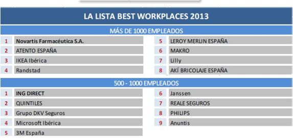 Ranking mejores empresas para trabajar 2013
