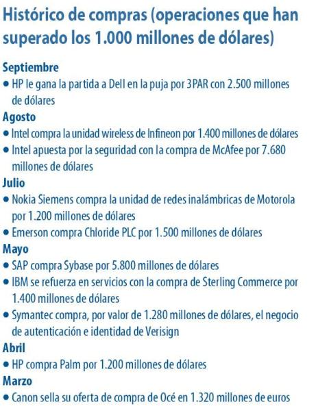 2010 está siendo un año prolífico en compras, siendo los meses de verano los que más grandes operaciones están acaparando. HP, Dell o Intel han sido los pesos pesados de estos meses.