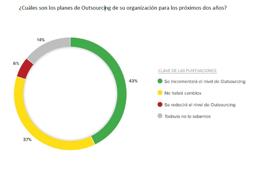 Según los datos del estudio, el 80% de las firmas consultadas mantendrá o aumentará su nivel de externalización en los próximos dos años, cifras que confirman el buen momento que atraviesa el sector. Tan solo el 6% de los encuestados prevé reducir sus inversiones. Jef Loos, director de investigación de Whitelane Research, destaca el gran desarrollo de la externalización en nuestro país, comparado con la media europea: “Esta misma investigación se lleva a cabo en 13 países europeos con diferentes resultados” explica.