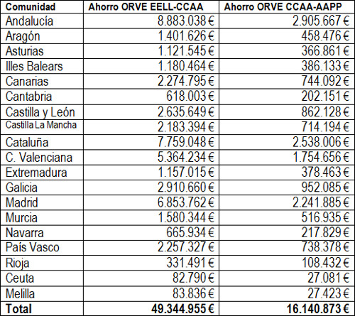 Esta estimación se ha calculado sobre un coeficiente medio de ahorro de 1,07 euros por ciudadano/año en el flujo de registros entre las entidades locales y las Comunidades Autónomas; y de 0,35 euros ciudadano/año en el flujo de registros de las Comunidades Autónomas con el resto de las Administraciones Públicas.