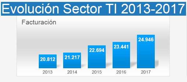 Ametic ha presentado los resultados de la industria TI correspondiente al ejercicio 2017, que arrojan resultados positivos por cuarto año consecutivo. La facturación del sector de las Tecnologías de la Información en España creció un 6,4% y alcanzó un volumen de 24.946 millones de euros.