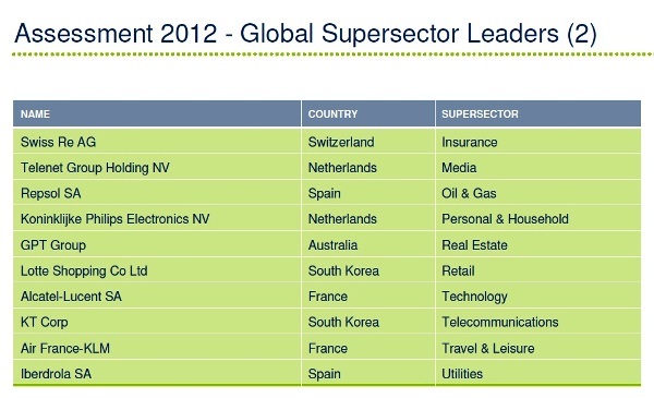 En el índice DJSI de este año ha evaluado las inversiones en sostenibilidad de 1.544 compañías de todo el mundo, repartidas en 19 supersectores, entre los que figuran el tecnológico y el de las telecomunicaciones. La parte de TI es liderada por Alcatel Lucent; y la de Telecomunicaciones, por KT.