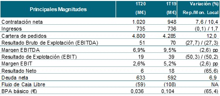 Indra ha obtenido una facturación de 735 millones de euros durante el primer trimestre de 2020, frente a los 736 millones del mismo periodo del año anterior. El EBITDA en el primer trimestre de 2020 se situó en 51 millones de euros frente a los 70 millones del primer trimestre de 2019, lo que supone un descenso del 27,7%. En palabras de Fernando Abril-Martorell, Presidente Ejecutivo de Indra: “Los resultados del primer trimestre de 2020 vienen marcados por el inicio de la COVID-19. Este nuevo entorno está comenzando a tener un impacto profundo en la economía global y por tanto en el comportamiento y decisiones de nuestros clientes. La profundidad y duración de dicho impacto es todavía incierta y, por tanto, difícil de cuantificar y aunque en el primer trimestre de 2020 ha sido muy limitado, prevemos que afecte en mayor medida a los resultados de Indra en los próximos trimestres«.