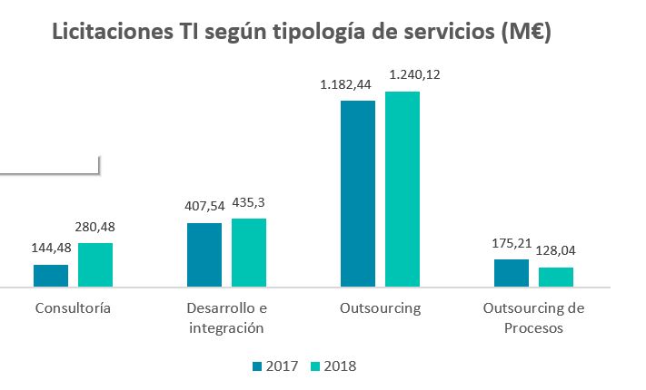 El importe de las licitaciones en consultoría y servicios TI supera los 2.080 millones de euros en 2018.