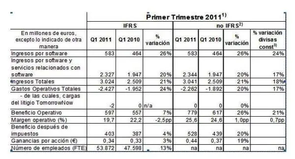 SAP ha comenzado el año con buen pie. En su primer trimestre del ejercicio fiscal de 2011, ha incrementado un 26% tanto sus ingresos por software como su beneficio operativo, gracias al avance en el mercado de sus nuevas soluciones in memory, on demand y movilidad.