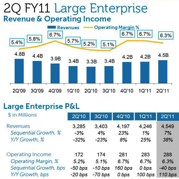 Tal y como se preveía, el segundo trimestre fiscal para Dell y el tercer trimestre para HP se han visto engrosados en gran medida por las ventas en el área de empresa, específicamente en servidores, sistemas de networking, almacenamiento y servicios.