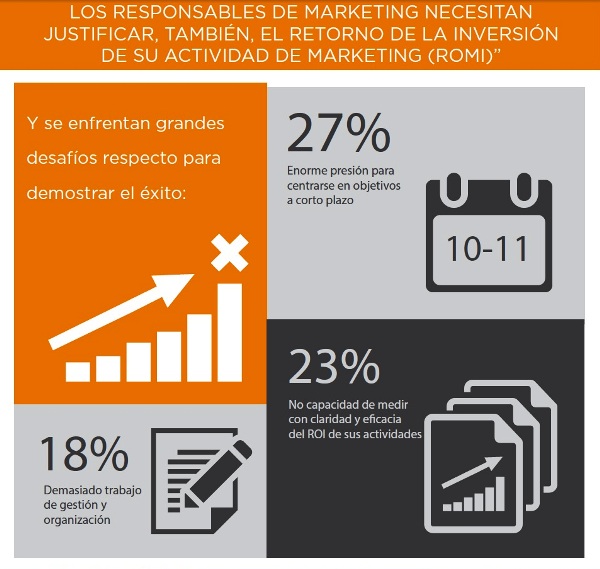 Por otro lado, los responsables de marketing han indicado su intención de no descuidar la gestión de los datos, que se sitúa como un factor clave en el éxito de la comercialización. Los responsables de marketing data-driven están, aproximadamente, dos veces más satisfechos con sus programas de marketing que sus colegas que no los tienen en cuenta en la toma de decisiones. Asimismo, dos tercios de los entrevistados consideran la falta de técnicas adecuadas para medir los resultados y las estrategias a corto plazo adoptadas por los departamentos de marketing como principales obstáculos para el éxito. Estos datos proporcionan una idea bastante precisa de las dificultades a las que los responsables de marketing modernos multicanal están teniendo que hacer frente: en primer lugar, la necesidad de contribuir de manera concreta al aumento de los ingresos.