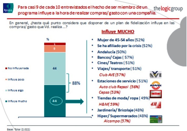 Otra conclusión que tiene que ver con los hábitos de uso, refleja que si en el pasado el cliente hacía un uso relativo de sus ventajas por pertenecer a un programa, ahora el 92% afirma utilizarlo de forma habitual, ya sea siempre (63%) o casi siempre (29%) que tiene ocasión. Por sectores, el uso más habitual se encuentra en jardinería y bricolaje (72%), estaciones de servicio (71%) e híper/súpermercados (68%). Por otra parte, casi 9 de cada 10 entrevistados reconoce que el hecho de pertenecer a un programa de fidelización le influye a la hora de elegir dónde realizar sus compras o gastos. Del 44% al que le influye mucho, el 52% declara haberse adherido a programas a causa de la crisis.