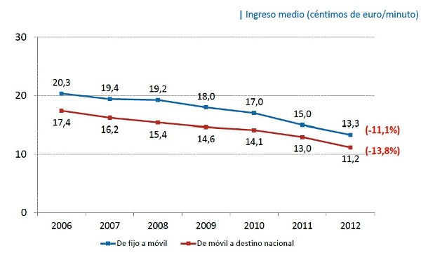 En este contexto de crisis económica, también se ha percibido que los precios de los servicios de telecomunicaciones han seguido bajando. En móvil, por ejemplo, el precio de una llamada de fijo a móvil descendió un 11,1% hasta los 13,3 céntimos de euro/minuto y el de una llamada de móvil a un destino fijo o móvil nacional se redujo un 13,8%.