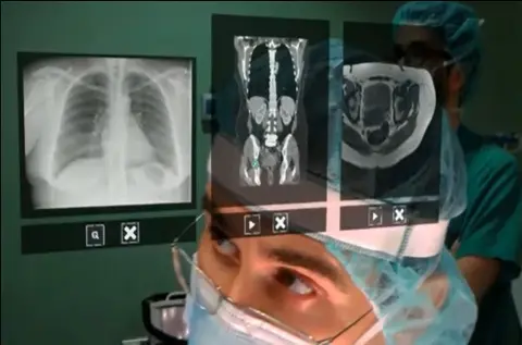 Al tratarse de realidad mixta, es decir, una combinación de realidad virtual con realidad aumentada se dispone de toda esa información visual proyectada sobre cualquier punto del mundo real, en este caso, del quirófano, por ejemplo, sobre una pared, una mesa quirúrgica o sobre el propio paciente. Para ello, el dispositivo hace un mapeo de todo el espacio, es decir, un escaneo del entorno y la creación de un mapa 3D que permite dimensionar la sala y los objetos y permitir colocar los paneles donde decida el cirujano.