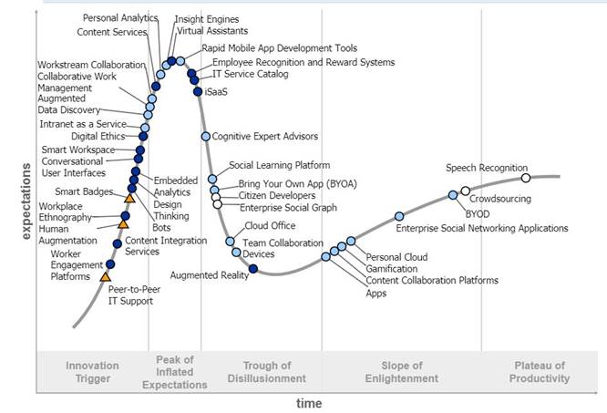 La ejecución de negocios digitales requiere una toma de decisiones más frecuente y compleja, resolución continua de problemas y reconocimiento rápido de patrones, todo lo cual precisa de la destreza digital como fuerza de trabajo. Sin embargo, en la mayoría de las organizaciones, la responsabilidad de ayudar a los empleados a desarrollar el deseo y la capacidad de explotar una amplia gama de tecnologías transformadoras no tiene que depender de ningún grupo o individuo, según destaca la curva de Gartner sobre Digital Workplace en 2017.