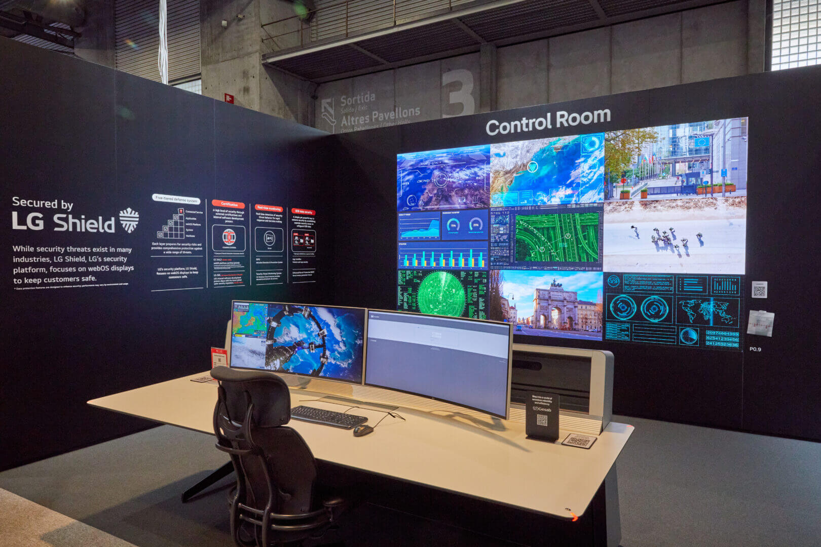 • Zona de Sala de Control: Soluciones certificadas por LG Shield, un sistema de seguridad multicapa diseñado para entornos críticos que evita ciberataques.
