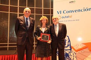 </strong>Este es el sexto año consecutivo que la Junta Directiva de&nbsp;Autelsi otorga un <strong>reconocimiento extraordinario</strong> a dos personas que hayan destacado por los compromisos adquiridos y por la actividad profesional ejercida en beneficio del <strong>desarrollo de la sociedad de la información y la Implantación y desarrollo de las Nuevas Tecnologías.</strong> El premio Autelsi a la personalidad más destacada por su visión y respaldo a las TIC ha sido otorgado a <strong>Dña Elena Salgado</strong>, <em>vicepresidenta Segunda del Gobierno de España.</em> <strong>Leandro Pérez Manzanera</strong>, p<em>residente de Autelsi</em> y <strong>César Rico</strong> <em>miembro de Honor de la asociación</em> entregaron el galardon. <strong>Don Jesús Pérez Iridoy</strong>, <em>director de Sistemas de Información</em> de <a href=»http://www.computing.es/16766/el-corte-ingles.aspx» target=»_blank»>El Corte Inglés</a>, recibió de manos de <strong>Miguel Salgado Carrero</strong>, <em>director general</em> de&nbsp;<a href=»http://www.computing.es/17628/emc-computer-systems-spain.aspx» target=»_blank»>EMC España</a> el <strong>premio Autelsi a la trayectoria profesional en las TIC.</strong> <br />