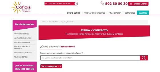 Esta solución se encuentra disponible en la página de contacto de Cofidis (www.cofidis.es/es/contactanos.html), y haciendo la consulta de forma directa o navegando a través de las distintas categorías.