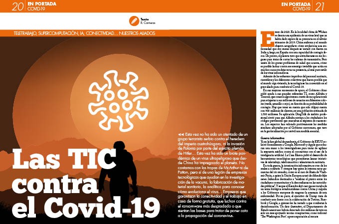 En número de abril de Computing ya se puede encontrar abierto a todos los lectores de manera gratuita en el kiosko digital de la revista. Como no podía ser de otra manera, el protagonista de esta edición es el coronavirus. Partiendo de la base que la vanguardia de esta guerra la libra el personal sanitario, de limpieza, científicos y demás héroes, las tecnologías se convierten en nuestro aliado para tratar de ganar la guerra. Las empresas se han puesto manos a la obra para batir a este enemigo letal e invisible, y que no haga mella, o haga la menos mella posible, en sus negocios. Así, Computing analiza las medidas extraordinarias y nuevas estrategias de teletrabajo, comunicación y contingencia que han tenido que tomar las compañías, y también, las oportunidades de innovar que esta inédita situación les brinda en algunos casos.