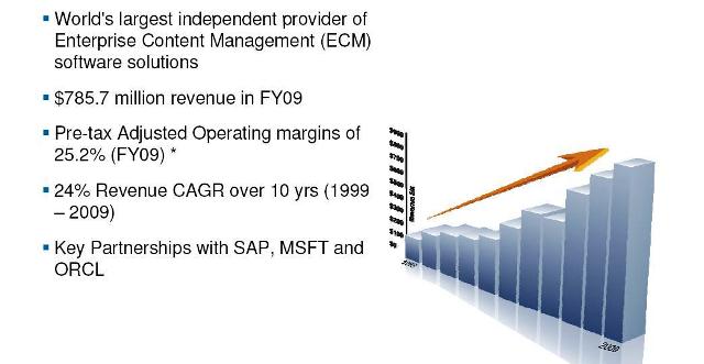 Asimismo, Open Text ha obtenido un beneficio neto de 50,1 millones de dólares, lo que significa que se ha acrecentado un 47 por ciento con respecto al mismo periodo de 2009 donde ganaba 34 millones.
