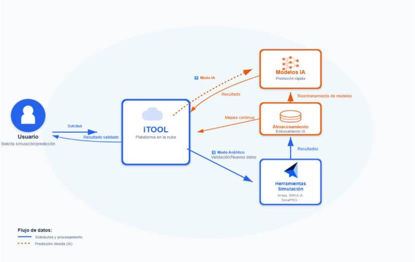 En la práctica, iTOOL coordina todas las simulaciones que hacen los socios del proyecto y utiliza los resultados para entrenar y mejorar los modelos de IA. Así, cada nuevo cálculo ayuda a que la inteligencia artificial aprenda y sea más precisa.