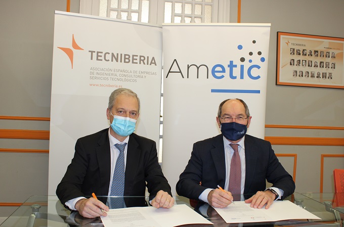 AMETIC y TECNIBERIA (Asociación Española de Empresas de Ingeniería, Consultoría y Servicios Tecnológicos) y han firmado un acuerdo de colaboración con el propósito de generar sinergias y defender conjuntamente la proyección de las empresas que integran ambas entidades. Los representantes de ambas asociaciones, Pablo Bueno, presidente de TECNIBERIA y Pedro Mier, presidente de AMETIC, han sido los encargados de suscribir el acuerdo.