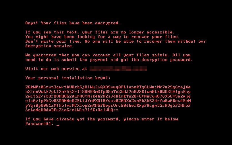 Un tercer archivo, viserion_23.job, reinicia el sistema de destino por segunda vez. La pantalla se bloquea y se muestra la siguiente nota: