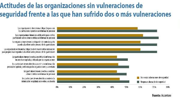 “Cuando comparamos el grupo que no sufrió ninguna vulneración con el grupo que sufrió dos o más incidentes, descubrimos que aquél muestra algunas diferencias sustanciales con respecto a éste, en lo que se refiere a las actitudes y a las políticas relativas a la privacidad y la protección de datos, así como en lo que respecta a lo que se considera que son usos aceptables de datos personales”, comenta la consultora en el estudio. “En general, nuestro análisis indica que las organizaciones sin vulneraciones de seguridad parecen mostrar una ‘cultura de precaución’ general con respecto a los datos sensibles, y la concienciación de que no son propietarios de tales datos sino, más bien, administradores de los mismos, y que es su responsabilidad protegerlos y salvaguardarlos”.