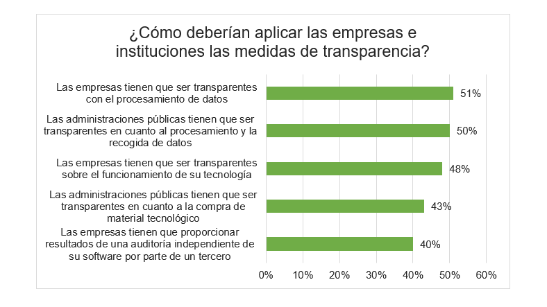 De hecho, uno de cada dos usuarios españoles dejaría de recurrir a un proveedor de servicios online si se produjera una filtración de datos, y además una gran parte de ellos ya está exigiendo de antemano a las empresas y a los gobiernos una mayor protección de sus datos. Más de la mitad de los españoles (60%) afirma que quieren que las empresas sean totalmente transparentes en el tratamiento de sus datos, mientras que el 52% piensa que las compañías tendrían que ser igual de claras respecto al funcionamiento de su tecnología. Además, el 60% de los usuarios de nuestro país piden a las administraciones públicas que sean transparentes en sus procesos de recopilación y gestión de datos.
