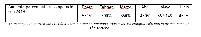 Los ataques DDoS, -que tienen como objetivo saturar una red hasta que el servidor se bloquee-, contra los recursos educativos crecieron exponencialmente esta primavera en comparación con el año anterior. En todos los meses de enero a junio de 2020, el número de ataques DDoS que afectan a los recursos educativos online aumentó al menos un 350% a nivel mundial en comparación con el mes correspondiente de 2019, según datos de Kaspersky.