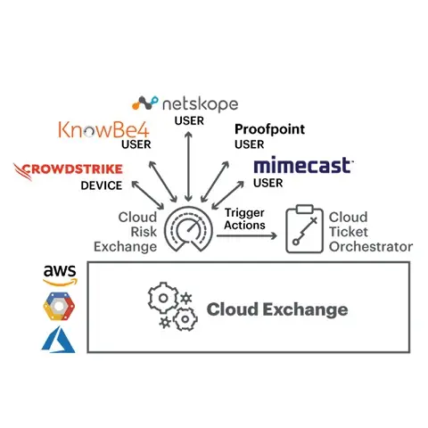 Cloud Risk Exchange (CRE) es un módulo de Netskope Cloud Exchange que permite el intercambio y la normalización de clasificaciones de riesgo entre soluciones de seguridad. CRE crea una vista única de los valores de riesgo de múltiples sistemas conectados para usuarios y dispositivos individuales. Así, y a medida que las puntuaciones se incorporan en la base de datos de CRE, se asignan a un rango de valores normalizados. Estas, además, pueden ponderarse según sea necesario para crear un único puntaje por usuario y un promedio diario en todos los usuarios y dispositivos. Al aprovechar la lógica comercial, los analistas de seguridad pueden hacer coincidir los puntajes individuales, las combinaciones de puntuaciones o los puntajes ponderados para impulsar acciones específicas en los sistemas conectados para reducir el riesgo.