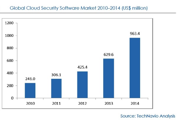 TechNavio, firma especializada en investigaciones de mercado, ha publicado los resultados de su estudio sobre elMercado mundial de Software de Seguridad Cloud. Estima que este segmento, -valorado en 241 millones de dólares en 2010-, mueva un volumen de negocio de 963,4 millones en 2014, con un ratio de crecimiento anual del 41,4%. Según explica, “los principales factores que influyen en el mercado global de Software de Seguridad Cloud están relacionados con el creciente uso de los servicios de seguridad cloud para el almacenamiento de datos críticos y el aumento repentino de los ataques específicos en la nube. Impulsado por múltiples factores tales como la flexibilidad, el ahorro de costes y la disponibilidad, un creciente número de compañías están transfiriendo sus datos a la nube”.