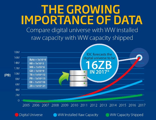 • La capacidad de almacenamiento pasará de 2.600 EB en 2012 a 7.200 EB en 2017